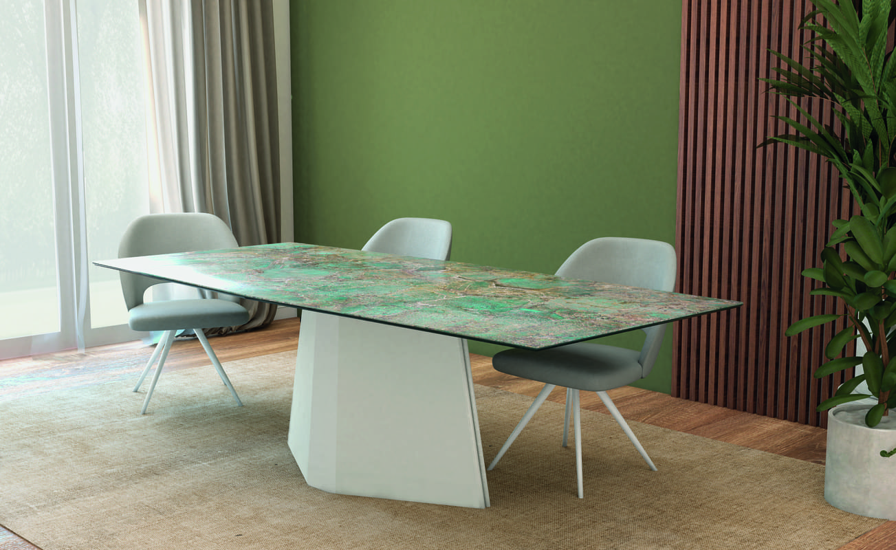 Il rigore delle forme e la brillantezza delle finiture vi farà perdere in un viaggio emozionale, dove voi e la vostra casa sarete i protagonisti dei momenti più belli del vostro tempo. Un tavolo molto raffi nato, da vivere in compagnia grazie alle sue dimensioni generose.