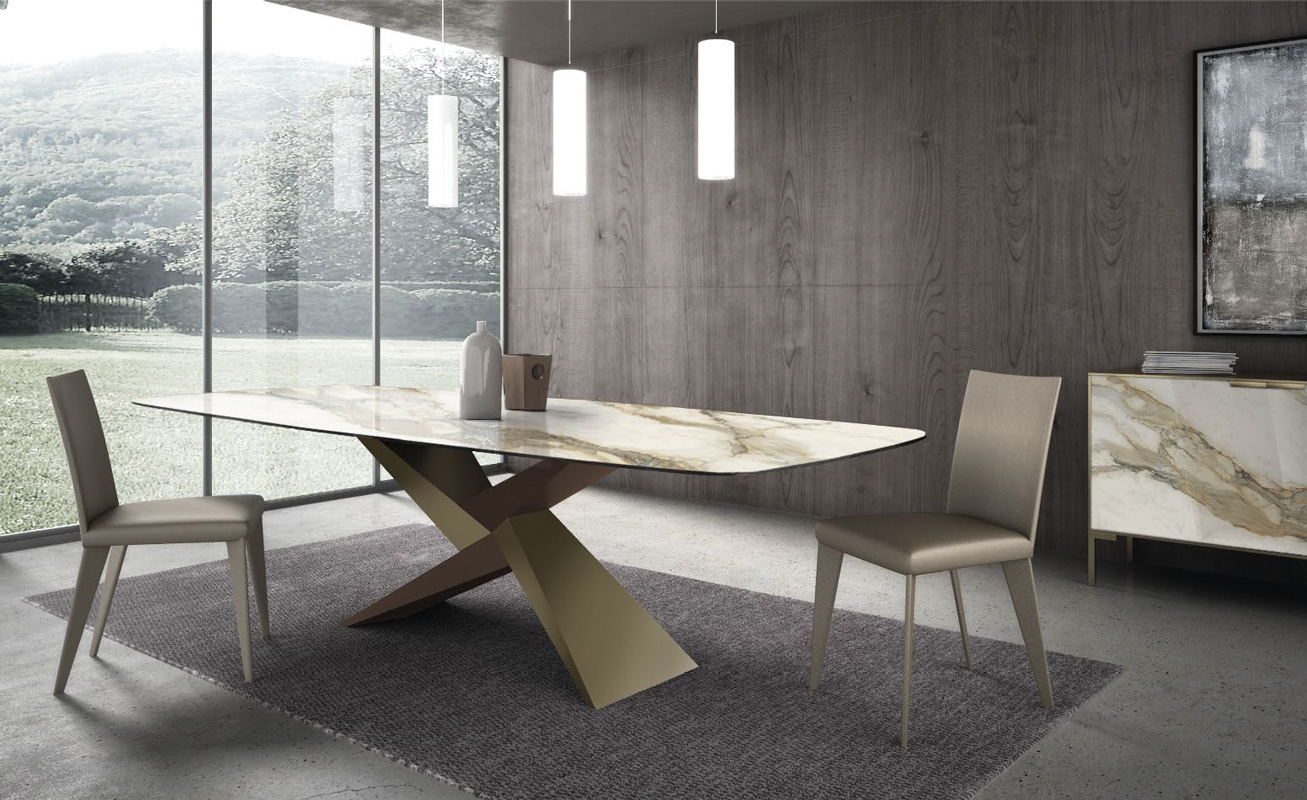 Incroci di geometrie ed eleganza caratterizzano il tavolo RIALTO.